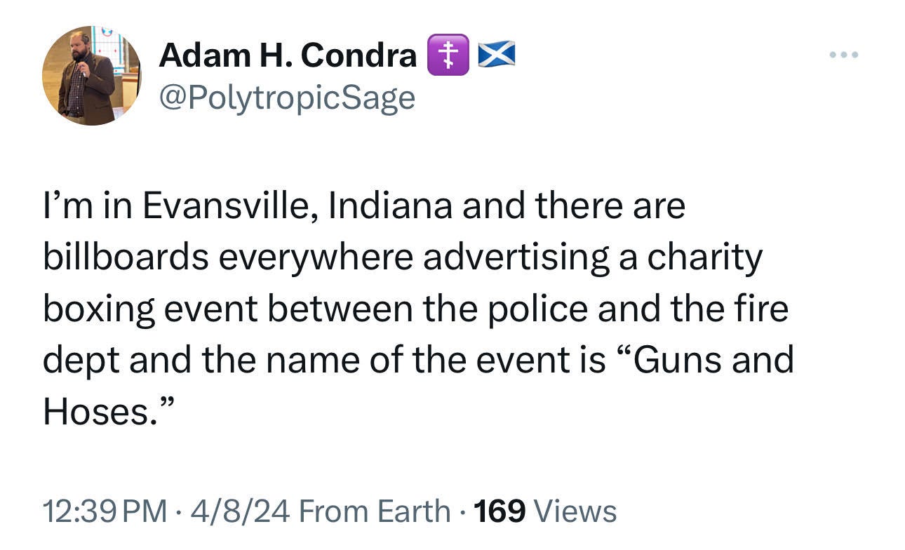 On Sunday, our party drove to Bowling Green and selected Gage, Kentucky as our intended viewing point. The next morning, a crash on the highway diverted us north, ending up in Evansville, Indiana, a place only too happy to force you to reckon with its particular charm: